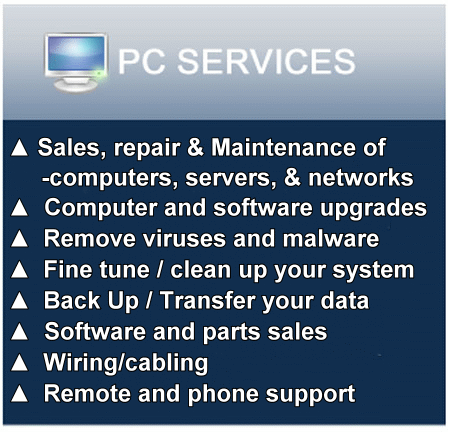 PC Colorado, Inc. offers a wide range of computer related services. Listed below are just a few of the key areas we can offer our professional assistance for your personal computer or personal computer network needs whether it is at home or at your small business.